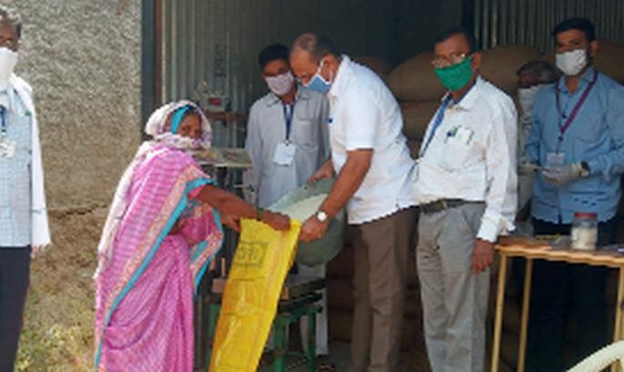 लोकमत न्यूज नेटवर्कधुळे : पुरवठा विभागामार्फत अंत्योदय आणि प्राधान्य कुटूंबातील लाभार्थ्यांना मोफत तांदूळ वाटप सुरू झाले आहे़ तालुक्यातील बोरीस, लामकानी गावात धुळे ग्रामीणचे आमदार कुणाल पाटील यांच्या हस्ते गुरूवारी मोफत धान्यवाटप करण्यात आले़लॉकडाउनमध्ये उदरनिर्वाहासाठी गरीबांना मोफत तांदूळ वाटपाची घोषणा शासनाने केली होती़ त्यानुसार पुरवठा विभागाने वितरण सुरू केले आहे़ आमदार पाटील यांनी गुरूवारी रेशन दुकानांवर जावून दुकानदार आणि ग्राहकांशी चर्चा केली़ गावागावातील शेवटच्या माणसापर्यंत मोफत धान्य पोहोचविण्यासाठी आपण प्रयत्न करणार आहे़ दुकानदारांसह ग्राहकांच्याही अडचणी सोडविल्या जातील, असे आश्वासन आमदार पाटील यांनी यावेळी दिले़यावेळी बोरीस येथे चंद्रभान देवरे, तुकाराम देवरे, देवराम बेहेरे, तानकु सोनवणे, रेशन दुकानदार भरत वाघ, दिलीप गिरासे, लामकानी येथे उपसरपंच धनराज महाले, डॉ़ युवराज चौधरी, बाजीराव महाले, रेशन दुकानदार जयेश सोनार, नाना पाकळे, मयुर अहिरराव, पंकज मराठे, पंकज तलवारे, दत्ता तडवी, तलाठी उमेश चव्हाण आणि पुरवठा कर्मचारी आदी उपस्थित होते़