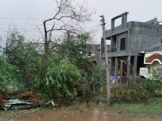 लोकमत न्यूज नेटवर्कधुळे : जिल्ह्यात मंगळवारी धुळे तालुक्यासह शिरपूर, साक्री व शिंदखेडा तालुक्यात वादळी वाऱ्यासह बेमोसमी पावसाने हजेरी लावली. काही ठिकाणी गारपीट झाली. शिरपूर येथे घरांची पडझड झाल्याने आठजण जखमी झाले. दरम्यान वादळामुळे विजेच्या तारा तुटल्याने अनेक ठिकाणी रात्री उशिरापर्यंत अंधार होता.शिरपूरशहरात सायंकाळी अर्धातास वादळी वाºयासह बेमोसमी पावसाने जोरदार हजेरी लावली. बोराच्या आकारा एवढी गारपीट झाली. वादळामुळे काहींच्या घरांचा पत्रा उडाला, झाडे कोलमडलीत, अचानक आलेल्या पावसामुळे व्यापारी व व्यावसायिकांचे मोठे नुकसान झाले. वादळामुळे वीजपुरवठा देखील रात्री उशिरापर्यंत खंडीत होता. गारांचा पाऊस आठ ते १० मिनीटे झाला.सायंकाळच्या सुमारास करवंद नाका परिसरात भाजीपाला व कापड व्यावसायिक मोठ्या प्रमाणावर फुटपाथवर गाडी लावून बसतात. अचानक जोराचा पाऊस झाल्यामुळे अनेकांचा भाजीपाला पाण्यात वाहून गेला. जोराच्या वादळामुळे झाडे कोलमडलीत तर काही झाडांच्या फांद्या तुटून रस्त्यावर पडल्या मात्र दुर्घटना टळली. काहींच्या घराचा पत्रा उडाल्यामुळे नुकसान झाले. यात उडालेलापत्रा अंगावर आल्याने आठजण किरोकोळ जखमी झाले. त्यात प्रेम गणेश शर्मा (४५, सावदळे), अमर वनवाली पावरा (२, रा. कळमसरे), विकास संतोष सोनवणे (६३, रा. शिंगावे), जितू ठावºया पावरा (५),वनवासºया तारासिंग पावरा (३०, रा. सुतगिरणी परिसर), लवलीबाई बाजा पावरा (३०, रा. सेंधवा), तारासिंग देवसिंग पावरा (३०, रा. सुतगिरणी परिसर), बाज्या रावजा पावरा (३०) यांचा समावेश आहे.थाळनेर - परिसरात मंगळवारी सायंकाळी ६.३० वजेच्या सुमारास अचानक वादळ सुरू झाल्याने परिसरातील शेतकऱ्यांचे गहू, हरभरा पिकांचे नुकसान झाले. वादळामुळे झाडे पडल्याने विज पुरवठा खंडित झालो. अनेकांची घरांची पत्रे उडाली तर परिसरात बºयाच ठिकाणी झाडे उन्मळून पडल्याने विज पुरवठा खंडित झाला आहे. रात्री ८.३० वाजेच्या सुमारास हलक्या स्वरूपात पावसाच्या सरींना सुरुवात झाली आहे. उंटावद येथेही सायंकाळी वादळीवाºयासह पाऊस झाला.धुळे, साक्री, शिंदखेड्यातही पाऊसधुळे तालुक्यातील तिसगाव न्याहळोद व शहरात तुरळक प्रमाणात तर साक्री तालुक्यातील निजामपूर, जैताणे, बळसाणे, म्हसदी आदी ठिकाणी पाऊस झाला. यामुळे शेतीचे मोठ्या प्रमाणात नुकसान झाले आहे.
