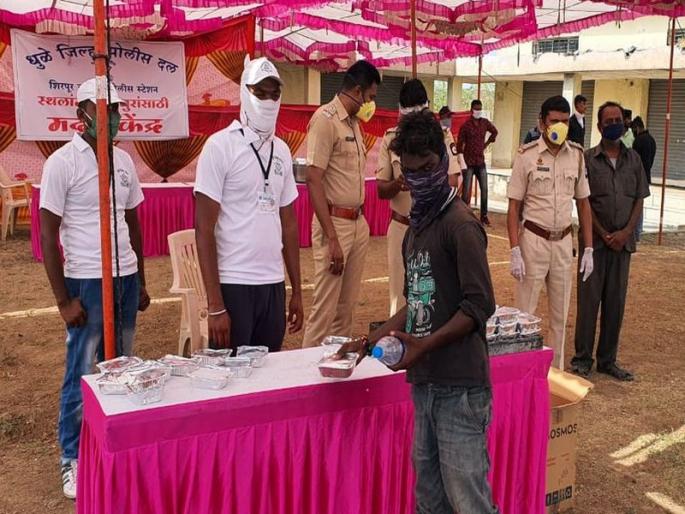 शिरपूर : शिरपूर तालुका पोलीस स्टेशनच्यावतीने हाडाखेड चेक पोस्ट येथे स्थलांतरीत मजुरांसाठी मदत केंद्र स्थापन करण्यात आले आहे़ या केंद्राच्या माध्यमातून मजुरांकरीता फु्रड पॅकेटस्, पिण्याचे पाणी तर एसटी बस चालकांनाही चहा बिस्किटे उपलब्ध करुन दिले जात आहे़ धुळे जिल्हा पोलीस दलाचा हा उपक्रम आहे़मजुरांना आवश्यक असल्यास वैद्यकीय सुविधा देखील याठिकाणी उपलब्ध करुन दिले जात आहे़ हाडाखेड चेक पोस्टच्या मदतीने स्वच्छतागृह, हॅण्डवॉश उपलब्ध करुन दिलेले आहे़ याठिकाणी किमान हजार फूड पॅकेटस् रोज वाटप करण्याचे नियोजन केले आहे़ तसेच मध्यप्रदेश सिमेपर्यंत बससेवा असून पुढील राज्याच्या बसेस येत नाही तो पर्यंत विश्रांती कक्ष देखील सुरु करण्यात आलेला आहे़त्यामुळे सिमाभागात मजुरांची गर्दी कमी होण्यात मदत होत आहे़ मध्यप्रदेश राज्यातील बस आल्यानंतर पुढील प्रवासासाठी मजुरांना पाठविण्याची व्यवस्था देखील करण्यात आली आहे़या कामी पोलिसांसह आरटीओ विभाग, सदभाव कंपनीचे अधिकारी, वैद्यकीय अधिकारी, नागरिक यांचे सहकार्य मिळत आहे़