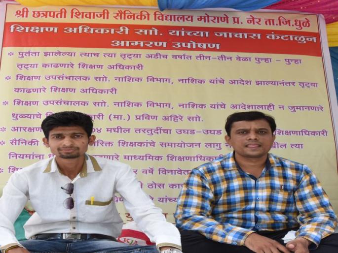 मोरोणे प्र.नेर येथील दोन उपशिक्षकांचे शिक्षणाधिकारी कार्यालयासमोर उपोषण