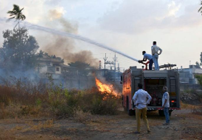 धुळे : मालेगाव रोडवरील गिंदोडिया कंपाउंडमध्ये लाग लागल्याचे कळताच महापालिका अग्नीशमन विभागाला कळविण्यात आले़ ३ बंबाच्या १० फेऱ्यांनी लागलेली आग आटोक्यात आणण्यात विभागाला सायंकाळी उशिरा यश आले़शहरातील मालेगाव रोडवर गिंदोडीया परिवाराचा एक मोकळी जागा आहे़ याठिकाणी गवत मोठ्या प्रमाणावर वाढलेले आहे़ याच गवताला रविवारी सायंकाळी साडेपाच वाजेच्या सुमारास अचानक आग लागली़ आग सुरुवातीला लहान स्वरुपात होती़ पण, वाळलेले गवत आणि वाºयामुळे आगीने क्षणार्धात रौद्ररुप धारण केले़ घटनेचे गांभिर्य ओळखून महापालिकेच्या अग्नीशमन विभागाला माहिती देण्यात आली़ विभाग प्रमुख तुषार ढाके व पथकाने आग विझविण्यासाठी शर्थीचे प्रयत्न केले़ ३ बंबांनी एका पाठोपाठ १० फेºय करुन आग विझविली़ आग विझली असलीतरी त्याची दाहकता रात्री उशिरापर्यंत कायम होती़