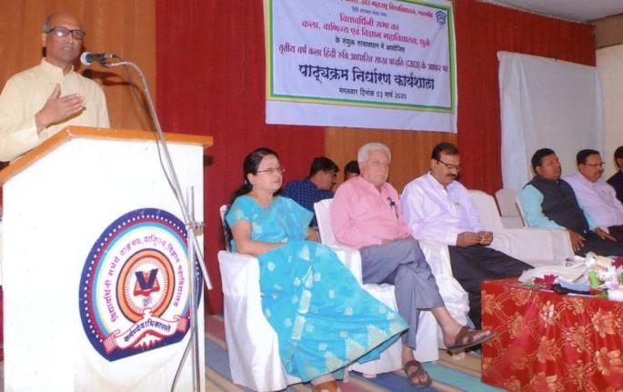 लोकमत न्यूज नेटवर्कधुळे : लोकशाहीमध्ये ज्या पध्दतीने पारदर्शीपणा आवश्यक आहे, त्याचप्रमाणे आता अभ्यासक्रमातही पारदर्शीपणा असावा़ तसेच रोजगाराभिमुख भाषा व साहित्य असावे, ज्यात विद्यार्थ्यांना जगण्याची दिशा मिळावी़ त्यांना सर्व क्षेत्रात काम करण्याची संधी मिळावी़ भाषा ही आता अडथळा असू नये, असे मत हिंदी साहित्य अकादमी मुंबईचे माजी अध्यक्ष डॉ़ शितला प्रसाद दुबे यांनी मांडले़कवयित्रि बहिनाबाई चौधरी उत्तर महाराष्ट्र विद्यापीठ हिंदी अध्ययन मंडळ आणि विद्यावर्धिनी महाविद्यालयातील हिंदी विभागाच्या संयुक्त विद्यमाने आयोजित हिंदी पाठ्यक्रम निर्धारण कार्यशाळेच्या उद्घाटन प्रसंगी ते बोलत होते़कार्यशाळेच्या अध्यक्षस्थानी प्राचार्या डॉ़ शुभदा ठाकरे होत्या़ व्यासपीठावर विद्यापीठाचे मानवविद्या शाखेचे अधिष्ठाता प्राचार्य डॉ़ प्रमोद पवार, माजी प्राचार्य डॉ़ कृष्णा पोतदार, हिंदी गझल समीक्षक डॉ़ मधु खराटे, हिंदी अध्ययन मंडळाचे अध्यक्ष डॉ़ सुनील कुलकर्णी, महाराष्ट्र राज्य हिंदी परिषदेचे अध्यक्ष डॉ़ जिजाबराव पाटील, अधिसभा सदस्य गौतम कुवर आदी मान्यवर उपस्थित होते़यावेळी हिंदी अध्ययन मंडळाच्या सदस्या डॉ़ कामिनी तिवारी यांच्या गझलकार चंद्रसेन विराट या पुस्तकाचे प्रकाशन करण्यात आले़कवयित्री बहिणाबाई चौधरी उत्तर महाराष्ट्र विद्यापीठातर्फे दोन सत्रामध्ये झालेल्या या कार्यशाळेत दुपारच्या सत्रात डॉ़ संजय शर्मा , डॉ़ सुनील पाटील, डॉ़ आऱ के़ जाधव, डॉ़ संजय रणखांबे, डॉ़ जयश्री गावीत यांनी उपस्थितांना मार्गदर्शन केले़ अध्यक्षस्थानी डॉ़ सुनील कुलकर्णी आदी होते़खान्देशातील प्राध्यापकांचा सहभागया कार्यशाळेत धुळे, जळगाव, नंदुरबार जिल्ह्यातील उमवीच्या ५० पेक्षा अधिक प्राध्यापकांनी सहभाग नोंदवला़ वर्तमान परिस्थितीत उपयोगी पडेल असा अभ्यासक्रम असावा़, असे मार्गदर्शन केले़ प्रास्ताविक डॉ़ योगेश पाटील यांनी तर सूत्रसंचालन डॉ़ जयश्री गावीत यांनी केले़ डॉ़ मंजु तरडेजा यांनी आभार मानले़