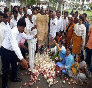 1 जूनपासून शेतकरी संपावर गेल्याने दूध, भाजीपाला, कांद्यासह अन्नधान्याची नासाडी होत आहे. शेतकरी आत्महत्या करत असताना शासनाचे त्याकडे दुर्लक्ष होत असल्याने आपल्या मूलभूत प्रश्नांकडे लक्ष वेधण्यासाठीच शेतक:याने कधी नव्हे ते संपाचे हत्यार उपसले आहे. त्यामुळे 1 ते 7 जून या दरम्यान शेतकरी आपला माल कोठेही विकणार नाहीत. शेतक:यांनी मुंबई, पुणे या सारख्या मोठय़ा शहरांना होणारा दूध, भाजीपाल्याचा पुरवठा बंद केला आहे. शेतक:यांच्या मूलभूत प्रश्नांवर सरकारने तोडगा काढून कर्ज माफ केले पाहिजे, दूध, भाजीपाल्याचे दर वाढले पाहिजे, स्वामिनाथन आयोगाच्या शिफारसी लागू झाल्या पाहिजे, या मागण्यांसाठी शेतकरी पेटून उठला आहे. त्यामुळे त्यांच्या आंदोलनाला पाठिंबा देणे हे सगळ्यांचे कर्तव्य असल्याने शिवसेना आणि विविध सामाजिक संघटनांतर्फे शुक्रवारी जिल्हाधिकारी कार्यालयावर घंटानाद आंदोलन करण्यात आले. यावेळी जिल्हाधिकारी कार्यालयासमोर कांदे टाकून घोषणा दिल्या.
