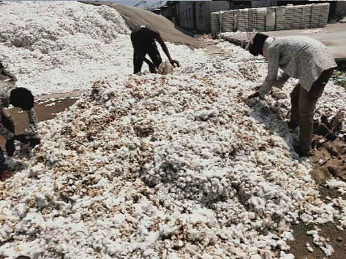 लोकमत न्यूज नेटवर्कधुळे : कापूस हे आंतरराष्टÑीय उत्पादन आहे. परंतू कोरोनामुळे आंतरराष्टÑीय मार्केटमध्ये कापसाच्या गाठीना कमी भाव मिळत असल्याने जिनिंग उद्योग आर्थिक अडचणीत सापडला होता.त्यामुळे दीड महिन्यापासून कापसाची खरेदी ठप्प होती. परंतू सीसीआय किंवा मार्केटींग फेडरेशनने दिलेल्या पाठबळामुळे जिनिंग उद्योग पुन्हा सुरु झाला. जिल्ह्यात सीसीआय केंद्रावर कापूस खरेदी सुरु झाली आहे.सध्या स्थितीत जिल्ह्यात धुळे सूतगिरणी, शिरपूर सूतगिरणी आणि शिंदखेडा तालुक्यात खाजगी तीन जिनिंग सुरु आहेत. त्यात शिंदखेडा येथील केशरानंद जिनिंगमध्ये १ लाख १५ हजार क्विंटल आणि वर्धमान आणि अभिषेक जिनिंगमध्ये १३० हजार क्विंटल तर धुळे सुतगिरणीत २० हजार तर शिरपूरमध्ये ५० हजार क्विंटल कापसाची खरेदी झाली आहे.३ लाख क्विंटल कापूस शिल्लक - कापूस खरेदी उशिरा सुरु झाल्याने जिल्ह्यात आणखी ३ लाख क्विंटल कापूस शेतकऱ्यांच्या घरात शिल्लक आहे. दोंडाईचा मार्केटमध्ये ६ हजार शेतकऱ्यांनी कापूस विक्रीसाठी आपली नावे नोंदविली आहेत. त्यात १८०० शेतकºयांचा माल मोजला गेला आहे. आंतरराष्टÑीय मार्केटमध्ये कापसाला ४५०० रुपये प्रति क्विंटल भाव मिळत आहे. तर सीसीआयचे प्रति क्विंटल ५११० ते ५३५५ रुपयापर्यंत भाव आहे.गुरुवारपासून शिंदखेडा तालुक्यातील केशरानंद कोटेक्स येथेही सीसीआय चे कापूस खरेदी केंद्र सुरु होत आहे.शिरपूर तालुका - लॉकडाऊनमुळे शासनाने सीसीआयला कापूस खरेदीची परवानगी दिल्यामुळे शिरपूर-चोपडा मार्गावरील दहिवद फाट्याजवळील डी़आरक़ॉटन येथे दररोज ४० ते ५० वाहनांची मोजमाप सोशल डिस्टन्स राखत खरेदी करण्यात आली़ तत्पूर्वी, शेतकºयांनी येथील मार्केट कमिटीत नाव नोंदणी केली होती़ आतापर्यंत १ हजार ७९८ शेतकºयांनी नोंदणी केली होती़ मात्र प्रत्यक्षात ७०० शेतकºयांचा कापूस देखील खरेदी करण्यात आलेला नाही़ त्यामुळे नोंदणी केलेल्या हजारावर शेतकºयांकडे अद्यापही कापूस पडून आहे़११ नोव्हेंबर २०१९ ते ३ मार्च २०२० दरम्यान येथील डी़आरक़ॉटन येथे ७३ हजार ९०७ क्विंटलची तर लॉकडाऊन काळात म्हणजेच ५ मे ते ६ जून २०२० दरम्यान १८ हजार ४२५ क्विंटल कापसाची खरेदी करण्यात आली आहे़ या कालावधीत फक्त ७०० शेतकºयांचा कापूस खरेदी करण्यात आला आहे़ कापसाला ५ हजार २१७ ते ५ हजार ३५५ भाव दिला आहे़ मात्र ६ जूननंतर काही तांत्रिक अडचणींमुळे कापूस खरेदी प्रशासनाने बंद केली आहे़आतापर्यंत या कॉटन जिनिंगला ९२ हजार क्विंटलपर्यंत कापूस खरेदी करण्यात आला आहे़ या जिनिंगला कापूस ठेवण्यासाठी शेड नसल्यामुळे उघड्यावर ताडपत्रीने झाकून ठेवण्यात आलेला आहे़ मात्र निसर्ग वादळ येण्याच्या आदल्यादिवशी जोरदार पावसाने हजेरी लावल्