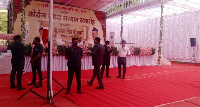 धुळे : बारीपाडा येथील कार्यक्रम आटोपल्यामुळे धुळ्याच्या दिशेने निघालेले राज्यपाल भगतसिंह कोश्यारी लवकरच येणार असल्यामुळे महापालिकेतील यंत्रणा सज्ज झाली आहे़ नागरीकांसह पदाधिकारी, नगरसेवक, नगरसेविका, अधिकारी उपस्थित आहेत़राज्यपाल भगतसिंह कोश्यारी हे साक्री तालुक्यातील बारीपाडा येथील कार्यक्रम आटोपून धुळ्याकडे रवाना झाले आहेत़ त्या पार्श्वभूमीवर येथील महापालिकेजवळ पोलिसांचा बंदोबस्त लावण्यात आलेला आहे़ ज्यांच्याकडे पास दिले आहेत त्यांनाच आतमध्ये प्रवेश देण्यात येत आहे़ शिवाय या ठिकाणी वाहतुकीची कोंडी होऊ नये म्हणून पोलिसांनी नियोजन करण्यास सुरुवात केली आहे़