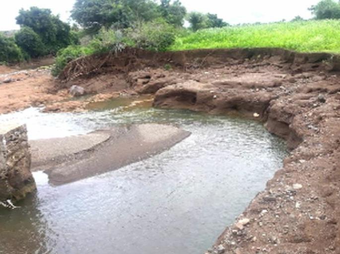 धुळे : जिल्ह्यात गेल्या दोन-तीन दिवसांपासून जोरदार पाऊस होत असून त्यामुळे घरांची पडझड, पुराचे पाणी शेतांमध्ये शिरल्याने पिकांचे तसेच शेतजमिनीचे नुकसान झाले आहे. शिरपूर तालुक्यातील जवखेडे येथे रविवारी पहाटे घराचे छत कोसळल्याने त्याखाली दबून एकाचा जागीच मृत्यू झाला. शिंदखेडा तालुक्यातील वर्षी येथे अनेक घरांची पडझड झाली आहे. छत कोसळल्याने एकाचा मृत्यूतºहाडी - शिरपूर तालुक्यातील जवखेडा येथे घराचे छत कोसळल्याने त्याखाली दबून एकाचा मृत्यू झाला. रविवारी पहाटे ही दुर्दैवी घटना घडली. गुलाब लोटन पाटील (५५) असे मृताचे नाव आहे. गेल्या दोन-तीन दिवसांपासून रोज सायंकाळी मुसळधार पाऊस पडत असल्याने शनिवारी सायंकाळी पावसाने जोरदार हजेरी लावली. या पावसामुळे घरात एकटे झोपले असताना पहाटे चार वाजता घराचे छत अचानक कोसळले. त्या छताखाली दबून पाटील यांचा जागीच मृत्यू झाला. ते घरी एकटे असल्याने ग्रामस्थांना उशिरा समजले. त्यामुळे तत्काळ मदत मिळू शकली नसल्याने त्यांचा मृत्यू झाला. पीडित कुटुंबाला तत्परतेने मदत मिळावी, अशी मागणी होत आहे. मयत गुलाब पाटील यांची पत्नी आजारी असून तिच्यावर नाशिक येथे दवाखान्यात उपचार सुरू आहेत. पाटील यांच्या पश्चात पत्नी, एक मुलगा व दोन मुली असा परीवार आहे.विंचूर परिसरात सर्व बंधारे ओसंडले विंचूर - धूळे तालुक्यात विंचूर निमगुळ सह बोरी नदी परिसरात नियमित पाऊस सुरू असून रविवारी दुपारी पुन्हा दोन तास जोरदार हजेरी लावली. त्यामुळे मांडळ धरणासह दोंदवाड, विंचूर, धामणगाव, बोधगाव आदी गावांचे सर्व कोल्हापुरी पद्धतीचे बंधारे ओसंडून वाहू लागले आहेत. पुरमेपाडा धरण ‘ओव्हर फ्लो’ झाल्याचे कळताच पंचक्रोशीतील नागरिकांनी ते पाहण्यासाठी गर्दी केली होती.‘रोहिणी’च्या पुराने नुकसाननिजामपूर - साक्री तालुक्यात खुडाणे शिवारात रोहिणी नदीला आलेल्या पुराचे पाणी कोल्हापूर सिमेंट बंधाºयाच्या बाजूने शेतात घुसून उभे बाजरी पीक व शेत जमीन वाहून गेली आहे. खुडाणे शिवारात रोहिणी नदी काठास प्रकाश बाबूराव काळे यांची शेती आहे. गत महिन्यात झालेल्या अतिवृष्टीने रोहिणी नदीस मोठा पूर आला होता. नदीत असलेल्या कोल्हापूर टाईप बंधाºयाच्या बाजूने पुराचे पाणी काळे यांच्या शेतात घुसले. त्यामुळे २० गुंठे बाजरीच्या उभ्या पिकासह ३० गुंठे शेत जमीन वाहून गेली. पोलीस पाटील अनिल जाधव, शेतकरी कन्हैयालाल काळे, छबूलाल काळे, ग्रा़ पं़ सदस्य महारु माळचे, शेतकरी मालक प्रकाश बाबूराव काळे उपस्थित होते.वर्षी येथे अनेक घरांची पडझड वर्षी - शिंदखेडा तालुक्यातही दोन दिवसांपासून जोरदार पाऊस होत असून वर्षी ८० ते ९० घरांची पडझड झालेली आहे़ शेतात पावसाचे पाणी मोठ्या प्रमाणावर शिरल्याने कपाशीसह म