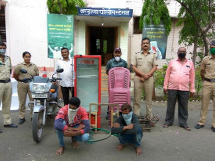 धुळे : शिंदखेडा तालुक्यातील शिराळे येथे एका हॉटेलात झालेल्या चोरीचा छडा लावण्यात नरडाणा पोलिसांनी अवघ्या दोन दिवसात यश आले आहे़राजेंद्र सुदाम संदानशिव (२१) आणि आकाश भिकन भिल (१९) अशी या दोन संशयितांची नावे आहेत़ दोघे वर्षी ता़ शिंदखेडा येथील रहिवासी आहेत़शिराळे गावाच्या शिवारात मुंबई-आग्रा महामार्गाच्या लगत चहा आणि नाश्त्याचे हॉटेल आहे़ परंतु लॉकडाउनमुळे हे हॉटेल सध्या बंद आहे़ याचा गैरफायदा घेत चोरट्यांनी पाच जूनला रात्री हॉटेलच्या शटरचे कुलूप तोडून आत प्रवेश केला़ हॉटेलातील फ्रीज, प्लॅस्टीकच्या आट खुर्च्या, गॅस शेगडी, पाण्याची इलेक्ट्रीक मोटार, टीकव, रसवंती यंत्राचे सुटे भाग, इतर किरकोळ साहित्य आणि गंगाजळीतील काही रोख रक्कम असा एकूण २१ हजार तीनशे रुपये किंमतीचा ऐवज चोरुन नेला़याप्रकरणी हॉटेलचे मालक संजय रामदास पाटील रा़ शिराळे यांच्या फिर्यादीवरुन नरडाणा पोलीस ठाण्यात आठ जूनला भादंवी कलम ४५७, ३८० अन्वये गुन्हा दाखल करण्यात आला होता़दरम्यान, जिल्हा पोलीस अधीक्षक चिन्मय पंडीत, अप्पर पोलीस अधीक्षक राजु भुजबळ, उप विभागीय पोलीस अधिकारी शिरपूर अनिल माने, नरडाणा पोलीस ठाण्याचे सहायक पोलीस निरीक्षक योगेश राजगुरू यांच्या मार्गदर्शनाखाली हेड कॉन्स्टेबल आत्माराम माळी, पोलीस नाईक भिमराव बोरसे यांनी तपासाची चक्रे फिरवून सखोल तपास केला़ त्यावेळी त्यांना चोरांचा सुगावा लागला़ नरडाणा पोलिसांनी वर्षी येथील दोघा संशयितांना मुद्देमालासह ताब्यात घेतले आहे़ त्यांच्याकडून आणखी गुन्हे उघडकीला येण्याची शक्यता आहे़