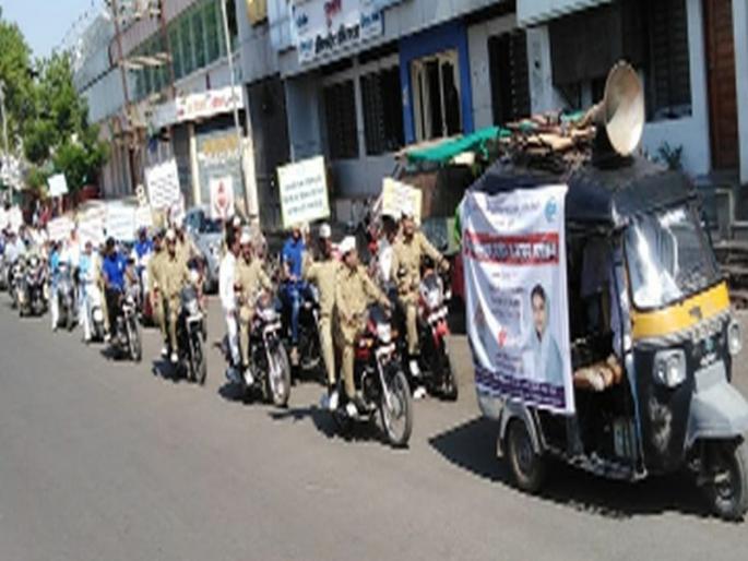 रक्तदान शिबीरासाठी शहरातुन काढण्यात आलेली जनजागृती रॅली़