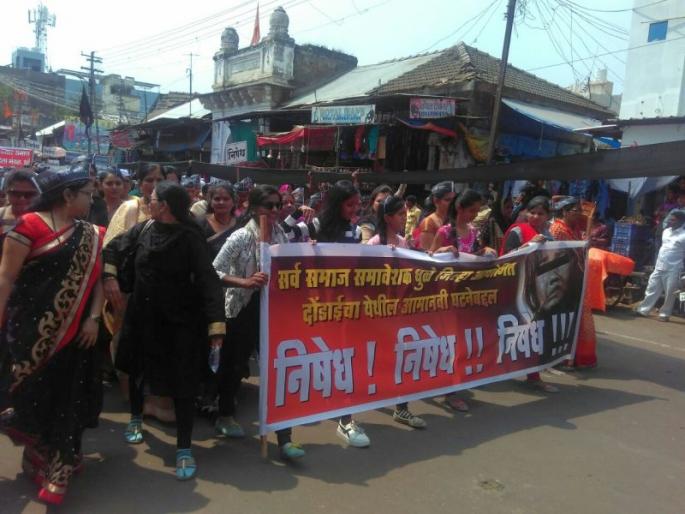 धुळे : दोंडाईचा येथील नूतन प्राथमिक विद्यामंदिरातील पाचवर्षीय बालिकेवर लैंगिक अत्याचार प्रकरणी दोषींवर त्वरित कठोर कारवाई करावी, या मागणीसाठी सर्व समावेशक महामूकमोर्चाला शहरातील मनोहर टॉकीज परिसरात असलेल्या छत्रपती शिवाजी महाराज पुतळ्यापासून दुपारी १२ वाजता प्रारंभ झाला. आग्रारोडमार्गे हा मोर्चा जिल्हाधिकारी कार्यालयावर धडकला़ मोर्चात हजारो हजार पुरूष, महिला सहभागी झाल्या़