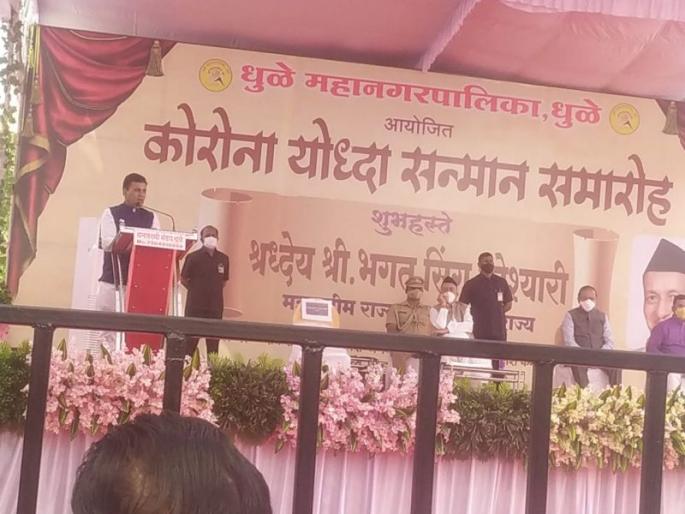 धुळे : महापौर चंद्रकांत सोनार यांनी आपल्या प्रास्ताविक भाषणातून राज्यपाल भगतसिंह कोश्यारी यांना धुळ्याची माहिती देण्याचा प्रयत्न केला़व्यासपिठावर खासदार डॉ़ सुभाष भामरे, आमदार जयकुमार रावल, महापौर चंद्रकांत सोनार व्यासपिठावर उपस्थित होते़ याशिवाय पदाधिकारी, नगरसेवक, नगरसेविका, नागरीकांचीही देखील उपस्थिती होती़ महापौर चंद्रकांत सोनार यांनी प्रास्ताविकातून धुळ्याची माहिती देण्याचा प्रयत्न केला़
