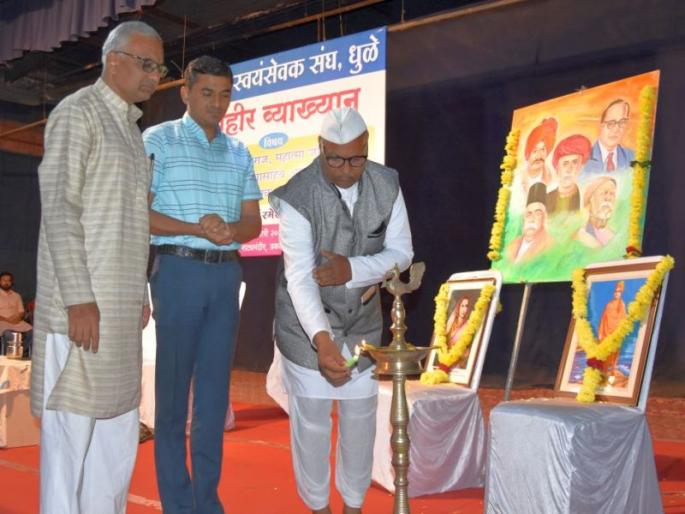धुळे : छत्रपती शिवाजी महाराजांच्या कार्यकाळात सामाजिक समरसतेची मुहुर्तमेढ खऱ्या अर्थाने रोवली गेली़ सामाजिक समरसतेची व्याप्ती खूपच मोठी असून ती समजून घेण्याची गरज आहे़ असे विचार औरंगाबाद येथील सामाजिक समरसतेचे अखिल भारतीय कार्यकारणी सदस्य प्रा़ डॉ़ रमेश पांडव यांनी व्यक्त केले़राष्ट्रीय स्वयंसेवक संघाच्या धुळे शाखेतर्फे छत्रपती राजर्षी शाहू महाराज नाट्यमंदिरात ‘छत्रपती शाहू महाराज, महात्मा फुले, भारतरत्न डॉ़ बाबासाहेब आंबेडकर आणि सामाजिक समरसता’ या विषयावर प्रा़ डॉ़ रमेश पांडव बोलत होते़ यावेळी जिल्हा संघचालक संजय चौधरी, शहर संघचालक डॉ़ पंकज देवरे यांच्यासह अन्य मान्यवर उपस्थित होते़प्रा़ डॉ़ पांडव म्हणाले, स्वातंत्र्यपूर्व काळात अनेकांनी आपल्या जीवाचे बलिदान दिले़ अनेकांनी प्रबोधन केले़ संघर्ष करुन आपल्याला स्वातंत्र्य प्राप्त झाले आहे़ एकमेकांचे सुख-दु:ख समजून घ्यायला हवे़ छत्रपती शाहू महाराज, महात्मा फुले, भारतरत्न डॉ़ बाबासाहेब आंबेडकर यांनी समाज विकासासाठी दिलेले योगदान खरोखरच वाखाणण्याजोगी आहे़