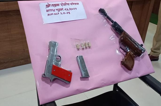 धुळे : तालुक्यातील नेर येथून एका घरातून देशी बनावटीचा गावठी कट्टा, चार जिवंत काडतुसे व एक छऱ्याची एअर बंदूक असा एकूण २२ हजार रुपयांचा मुद्देमाल जप्त केला असून, या प्रकरणी एका तरुणास अटक करण्यात आली आहे. ही कारवाई धुळे तालुका पोलिसांनी केली. धुळे तालुका पोलीस स्टेशनचे सहायक पोलीस निरीक्षक गजानन गोटे यांना नेर येथील एका तरुणाच्या घरात बेकायदेशीर देशी बनावटीचा गावठी कट्टा असल्याची गुप्त माहिती मिळाली. त्यानुसार पोलिसांनी नेर येथे जाऊन पंकज उर्फ सागर बाजीराव चाैधरी (२०, रा. बाजारपट्टा, नेर) याच्या घराची झडती घेतली. घरात १५ हजार रुपये किमतीचा गावठी कट्टा, २ हजार रुपये किमतीची चार जिवंत काडतुसे तसेच ५ हजार रुपये किमतीची एक छऱ्याची बंदूक असा एकूण २२ हजार रुपये किमतीचा मुद्देमाल आढळून आला. या प्रकरणी पंकज चौधरी या तरुणाविरुद्ध गुन्हा दाखल करण्यात आला असून, त्यास अटक करण्यात आली आहे.