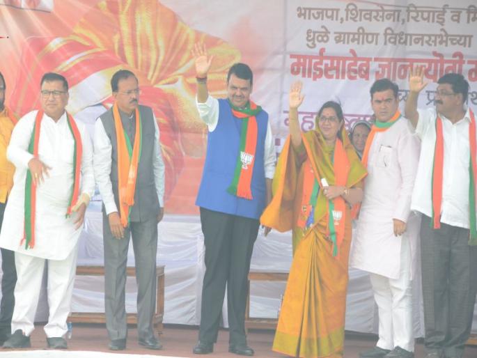 धुळे : विधानसभा निवडणुकीच्या मैदानात तेल लावून आमचे पेहलवान तय्यार आहेत़ मात्र, यात विरोधक कुठे दिसत नाही अशी टिका राज्याचे मुख्यमंत्री देवेंद्र फडणवीस यांनी धुळे तालुक्यातील नेर येथील सभेत केली़ राज्याच्या प्रचाराचा शुभारंभही त्यांनी या सभेच्या माध्यमातून केला़ धुळे ग्रामीण मतदार संघाच्या महायुतीच्या उमेदवार ज्ञानज्योती भदाणे यांच्या प्रचारानिमित्त आयोजित सभेत मुख्यमंत्री देवेंद्र फडणवीस बोलत होते़ यावेळी उमेदवार ज्ञानज्योती भदाणे यांच्यासह खासदार डॉ़ सुभाष भामरे, मंत्री जयकुमार रावल, पालकमंत्री दादा भूसे, मनोहर भदाणे, राम भदाणे, माजी आमदार द़ वा़ पाटील यांच्या पत्नी सुशीला भदाणे यांच्यासह अन्य उपस्थित होते़ मुख्यमंत्री फडणवीस म्हणाले, महाजनादेश यात्रा तीन टप्यात आटोपल्यानंतर आता प्रचाराचा शुभारंभ धुळे ग्रामीण उमेदवाराच्या प्रचार सभेतून होत आहे़ हा शुभारंभ आमच्या मतदार संघातून करावा यासाठी राज्यातून ठिकठिकाणाहून आग्रह सुरु होता़ परंतु मताधिक्य सर्वाधिक मिळेल असा विश्वास असल्याने येथून हा शुभारंभ करत आहे़ते म्हणाले, काँग्रेस आघाडीची अवस्था फार बिकट होत आहे़ राहुल गांधी विदेश दौºयावर गेले आहेत़ पवारांची राष्ट्रवादी निम्मी रिकामी झाली आहे़ उर्वरीत मतदानानंतर ती रिकामी होईल, असं वाटतं़ सुशीलकुमार शिंदे म्हणतात मी थकलो आहे़ या पार्श्वभूमीवर दोन्ही काँग्रेसचे विलिनीकरण होऊ शकते अशी चिन्हे आहेत़ गेल्या १५ वर्षात काँग्रेस आघाडीची असलेली कामे पाहता आमच्या पाच वर्षात त्या पटीने कितीतरी विकासाची कामे आम्ही मार्गी लावली आहेत़ त्या जोरावरच मते मागायला पुन्हा आम्ही आलो आहोत़ असेही मुख्यमंत्री म्हणाले़ काँग्रेस आघाडीने तयार केलेल्या जाहीरनाम्याचा समाचार घेतला़