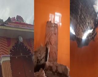 वीज कोसळून हनुमान मंदिराचे छत कोसळले; मूर्तीवर ओरखडाही नाही