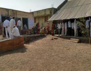 Dhule Municipal Election 2018 : पिंप्री गावात मतदान केंद्राबाहेर गर्दी मात्र केंद्रात शुकशुकाट