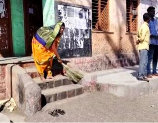 सरपंचांनी पदभार स्वीकारण्यापूर्वी ग्रामपंचायतीमध्ये स्वतः झाडू मारून केली स्वच्छता