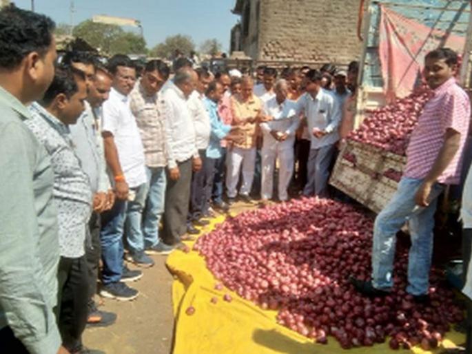 लोकमत न्यूज नेटवर्कपिंपळनेर : येथील उपबाजार समितीत सोमवारी कांदा मार्केट सुरू झाले़ कांद्याचा १५६० रुपये इतका उच्चांकी भाव मिळाला़ उद्घाटनानंतर ६० वाहनांचा लिलाव झाला़संपूर्ण खान्देशात कांद्यासाठी प्रसिद्ध असलेली पिंपळनेर उपबाजार समिती दोन मार्च रोजी सुरू होऊन कांदा मार्केटचे उद्घाटन सभापती पोपटराव सोनवणे, संचालक त्र्यंबक भाऊराव सोनवणे, संचालक व्यापारी प्रतिनिधी गजेंद्र शांताराम कोतकर, सचिव अशोक मोरे, शाखा प्रमुख संजय बावा, ज्येष्ठ व्यापारी प्रभाकर कोठावदे, किरण कोठावदे, हेमंत कोठावदे, उमेश कोतकर, निलेश चौधरी, हर्षद काकुस्ते, दीपक बागड, अमोल पाटील, दिलीप भदाणे, बाळासाहेब घरटे, प्रवीण कोठावदे, बालूशेठ कोठावदे, दिलीप कोठावदे, पोपट धामणे, महेश भदाणे, अनिल कोठावदे, हरीश कोठावदे, लक्ष्मण पाटील आदी व्यापारी व शेतकरी उपस्थित होते.उन्हाळी कांदा खरेदी करण्यात आल्याने बाजार समितीचे सभापती पोपटराव सोनवणे यांनी श्रीफळ वाढवून उद्घाटन केले़ दिवसभरात ६० वाहनांचा लिलाव करण्यात आला यात कांद्याला पंधराशे साठ रुपये प्रति क्विंटल या दराने भाव देण्यात आला तर सरासरी भाव हा ८०० ते चौदाशे रुपये प्रतिक्विंटल असा होता, येणाºया काही दिवसांमध्ये उपबाजार समितीत शेकडो वाहन दाखल होणार असल्याने व्यापारी कांदा खरेदीसाठी सज्ज झाले आहेत़तसेच कांदा निर्यात खुली करावी अशी मागणी शेतकऱ्यांनी केली़ सभापती सोनवणे यांनी येथील उपबाजार समितीत शेतकºयांसाठी सोयी सुविधा उपलब्ध केल्या जातील असे आश्वासन दिले़
