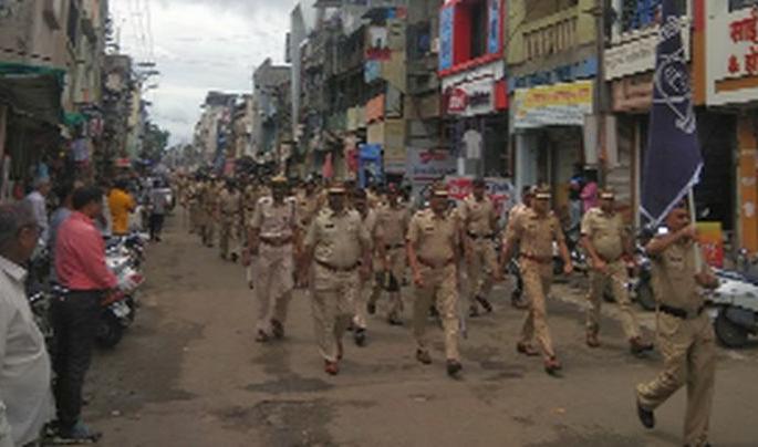 धुळे : गणरायाच्या मुर्तीचे गुरुवारी विसर्जन होणार आहे़ या अनुषंगाने पोलीस प्रशासन अर्लट असून शहरातील संवेदनशील भागात मंगळवारी संचलन करण्यात आले़गणरायाच्या मुर्तीची स्थापना २ सप्टेंबर रोजी झाल्यानंतर स्थानिक पोलीस आपआपल्या हद्दीत सज्ज झाले होते़ यानंतर दोंडाईचा, निजामपूर याठिकाणी श्रींच्या मुर्तीचे विसर्जन असल्यामुळे याठिकाणच्या बंदोबस्तासाठी पोलीस अधीक्षक विश्वास पांढरे यांच्या मार्गदर्शनाखाली पोलिसांची एक तुकडी पाठविण्यात आली होती़ याठिकाणचा चोख बंदोबस्त झाल्यानंतर धुळे शहराकडे लक्ष केंद्रीत करण्यात आले आहे़ दरवर्षाप्रमाणे यंदाही गणरायाच्या मुर्तीचे विसर्जनाचा कार्यक्रम सर्वत्र असल्यामुळे पोलीस अधीक्षक विश्वास पांढरे, अपर पोलीस अधीक्षक डॉ़ राजू भुजबळ यांच्या मार्गदर्शनाखाली गाव पातळीवर पोलिसांचा बंदोबस्त तैनात ठेवलेला होता़ गुरुवारी श्रींच्या मुर्तीचे विसर्जन होणार आहे़ या अनुषंगाने शहरातील संवेदनशील भागात पोलीस अधीक्षक विश्वास पांढरे यांच्या मार्गदर्शनाखाली अपर पोलीस अधीक्षक डॉ़ राजू भुजबळ यांच्या नेतृत्वाखाली हे संचलन करण्यात आले़ यावेळी धुळे शहराचे उपविभागीय पोलीस अधिकारी सचिन हिरे, सहायक पोलीस निरीक्षक, पोलीस उपनिरीक्षक यांच्यासह पोलीस, राज्य राखीव पोलीस दलाचे जवान, होमगार्ड आणि बँड पथक या संचलनात सहभागी झाले होते़