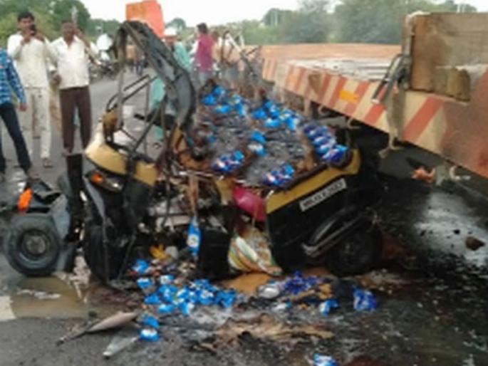 धुळे : शहराकडून अजंग गावाच्या दिशेने जाणाऱ्या थ्री सीटर रिक्षाला ट्रकने मागून धडक दिल्याने झालेल्या भीषण अपघातात रिक्षा चालकाचा जागीज मृत्यू झाला. तर तीन प्रवासी भाजल्याने गंभीर जखमी झाल्याची घटना घडली. बुधवारी सायंकाळी ६ वाजेच्या सुमारास ही घटना घडली.फागणे गावाच्या पुढे कासुमाई नर्सरी जवळ हा अपघात घडला. ट्रकने मागच्या बाजूने धडक दिल्याने रिक्षाला आग लागल्याने रिक्षाचालकाचा जागीच जळून मृत्य झाला. रात्री उशिरापर्यंत त्याची ओळख पटलेली नव्हती. तर याच रिक्षातून प्रवास करणारे आनंद शिवराम भदाणे (४२), प्रमिलाबाई भिमराव भदाणे (५६) व वैशाली श्रावण माळी (२२) सर्व रा. अजंग तालुका धुळे हे तिघे भाजून गंभीर जखमी झाले. शिवाय त्यांना गंभीर दुखापत झाली आहे. प्रदिप माळी यांनी तिघांना वाहनाने भाऊसाहेब हिरे शासकीय रुग्णालयात दाखल केले. त्यांच्यावर उपचार सुरू असून तालुका पोलीस ठाण्यात गुन्हा नोंदवण्याची प्रक्रिया सुरू होती.