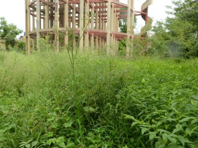 धुळे : वाडीभोकर रोडवरील रामनगरात असलेल्या जलकुंभ परिसर विविध समस्यांच्या गर्तेत सापडला आहे़ गवत मोठ्या प्रमाणावर वाढले असून मच्छरांचा त्रास होत आहे़ डुकरांसह कुत्र्यांचा मुक्तसंचार आहे़ याठिकाणी सुरक्षा रक्षकच नसल्याने सर्वकाही आलबेल असल्याचे समोर येत आहे़वाडीभोकर रोडवर रामनगरात जलकुंभ आहे़ या जलकुंभाच्या माध्यमातून परिसरातील कॉलन्यामध्ये पाणीपुरवठा केला जातो़ पण, पाणी गळतीमुळे या ठिकाणी मोठ्या प्रमाणावर डबके साचलेले आहे़ परिणामी मच्छरांचा प्रादुर्भाव वाढू लागला आहे़ गवताचेही प्रमाण आता मोठ्या प्रमाणावर झालेले आहे़ याकडे महापालिका प्रशासनाला बघायला वेळ नाही़तसेच जलकुंभ आवारात हायमास्ट लावण्यात आला होता़ पण, तो गेल्या कितीतरी दिवसांपासून बंदच आहे़ त्यामुळे रात्रीच्यावेळेस या भागात वावरणे जिकरीचे झाले आहे़ नियमित स्वच्छता होत नाही़ डुकरे आणि कुत्रे मोकाटपणे जलकुंभाच्या आवारात असल्याने घाणीचे साम्राज्य निर्माण झाले आहे़ या समस्यांकडे अनिल गोटे यांनीही लक्ष वेधले होते़सुरक्षा रक्षकाची गरजरामनगर जलकुंभाच्या ठिकाणी केवळ व्हॉलमन आहेत़ सुरक्षा रक्षक नसल्यामुळे सर्वकाही आलबेल असल्याचे चित्र आहे़ कोणीही या, कोणीही जा अशी स्थिती आहे़ सुरक्षा रक्षक राहिल्यास वचक निर्माण होऊ शकतो़