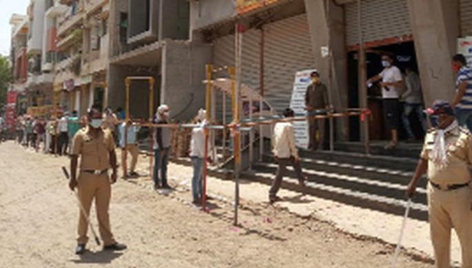 लोकमत न्यूज नेटवर्कधुळे/पिंपळनेर/दोंडाईचा : जिल्ह्यात बुधवारी सकाळी पिंपळनेर, दोंडाईचा आणि शिंदखेडा येथे पोलीस बंदोबस्तात दारु विक्रीला सुरुवात झाली.दारु खरेदीसाठी लोक सकाळपासूनच दारु विक्रीच्या दुकानाबाहेर रांग लावून उभे होते. पिंपळनेरला तर पोलीस बंदोबस्त लावण्यात आलेला होता. भर उन्हात सोशल डिस्टन्सिंगच्या नियमाचे पालन करीत गप्पगुमान उभे दिसून आले.कन्टेन्मेट एरियात दारुबंदीजिल्ह्यात धुळे महानगर, शिरपूर शहर आणि कन्टेन्मेट एरियात दारु विक्रीस सुट देण्यात आलेली नाही. त्यामुळे शहरात काही दारु विक्रेत्यांनी मंडप टाकून केलेल्या तयारीचा काहीच उपयोग झालेला दिसून आला नाही. याठिकाणी दारुची दुकाने बंदच होती.शौकिनांची घोर निराशाधुळे शहरातील काही दुकानदारांनी केलेली तयारी पाहता दारु विक्री सुरु होईल, अशी तळीरामांना आशा होती. मात्र मंगळवारी त्यांची निराशा झाली.दखल घेण्यासारखेनोंदणी दारु विक्रीच्या दुकानावर एक रजिस्टर ठेवण्यात आले आहे. त्या रजिस्टरवर दारु खरेदी करण्यासाठी आलेल्या प्रत्येक व्यक्तीचे नाव व पत्ता नोंदवून ठेवला जात आहे. पिंपळनेर येथे दुकानावर दारु खरेदी करण्यासाठी आलेल्या प्रत्येक व्यक्तीला सॅनिटाईज केले जात आहे. एकावेळी एकच ग्राहक दुकानाच्या काऊंटरवर येईल, अशी शिस्त लावण्यात आली आहे. ठराविक कोटा दुकानावर दारु खरेदी करण्यासाठी आलेल्या प्रत्येक व्यक्तीला त्याच्या आवडीच्या दारुची एक किंवा जास्तीत जास्त दोन बाटल्याच दिल्या जात आहे. लाखोंचा धंदा पिंपळनेर आणि दोंडाईचा शहरात दिवसभर दारु दुकानावर तळीरामांची गर्दी दिसून आली. दिवसभरात पाच लाखांच्यावर धंदा झाल्याचा अंदाज वर्तविण्यात येत आहे.दोंडाईचात सकाळपासूनच होती गर्दीशासनाला महसुलाची व मद्यपिंना दारूची किती गरज आहे, हे मंगळवारी दोंडाईचा येथे दारुच्या दुकानांसमोर झालेल्या गर्दीवरुन जाणवले. किमान अर्धा किमीच्या रांगेत शिस्तीत उभे राहून क्रमांकाने दारूची तल्लफ असणाऱ्यांनी दारूची बाटली मिळविली़ दारू घेतांना गोंधळ, काही अनुचित प्रकार होऊ नये म्हणून पोलीस तैनात होते़ भाजीपाला, किराणा दुकानापेक्षा सर्वात जास्त गर्दी दारूच्या दुकानासमोर दिसून आली.