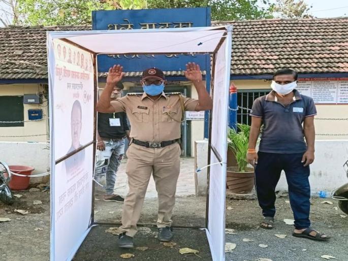 पोलीस ठाण्याबाहेर सॅनिटायझर कक्ष कार्यान्वित