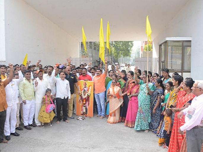 धुळे : महापालिकेच्या नवीन प्रशासकीय इमारतीच्या प्रांगणात संत श्री गाडगे महाराज यांचा पूर्णाकृती पुतळा उभारण्यात यावा या मागणीसाठी जिल्हा परिट समाज मंडळातर्फे पुण्यतिथीचे औचीत्य साधून मनपा प्रवेशव्दार संत गाडेग महाराज यांच्या प्रतिमेला पुष्पहार अर्पण करून अभिवादन करण्यात आले़महापालिकेच्या नवीन प्रशासकीय इमारतीच्या आवारात संत गाडगे महाराज यांच्या पुतळा बसविण्यासाठी २०१०पासून पाठपुरावा सुरू आहे़ त्यानुसार २०११ मध्ये महापालिकेत ठराव करून १५ लाख ५० हजार रूपयांचा ब्रांझ धातूचा पुतळा बनविण्याचे टेंडर सरमत पाटील या शिल्पकारास दिले होते़ या रक्कमपेंकी काही रक्कम ठेकेदाराला देण्यात आली आहे़ त्यानुसार संत गाडगे महाराज यांचा पूर्णाकृती पुतळा तयार झालेला आहे़ २०१५ मध्ये महासभेत याबाबत ठराव पारीत झाल्यानंतर आवश्यक सर्व परवागण्या मिळाल्या आहेत़महाराष्ट्र सरकारने पुतळा बसविण्यासाठी ना हरकत दाखला देण्यास एक वर्ष होऊन देखील अद्याप पुतळा बसविण्यात आलेला नाही़ मनपा आवारात पुतळा बसविण्यात यावा अन्यथा महापालिकेसमोर बिºहाड आंदोलन करण्यात येईल असा इशारा परीट समाजातर्फे देण्यात आला आहे़ यावेळी पंडित जगदाडे, संजय वाल्हे, शोभा जाधव, अनिल काकुळदे, सुनील सपकाळ, माया मोरे, अनिता दाभाडे, सुनील खैरनार, चंद्रकांत येशीराव, योगेश खैरनार, वासूदेव महारा, गुलाब सोनवणे, मंगला वाल्हे, जितू पवार,आदीं उपस्थित होते़