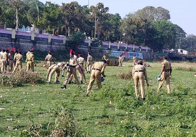 धुळे : येथील ४८ महाराष्ट्र बटालियन एनसीसीच्या वतीने राबविण्यात येत असलेल्या स्वच्छता पंधरवाड्या अंतर्गत समादेशक अधिकारी कर्नल बी. व्ही. एस. शिवा राव यांच्या मार्गदर्शनाखाली स्वच्छता विषयक विविध उपक्रम राबविण्यात येत असून सोमवारी मोठ्या प्रमाणात पांझरा नदी पात्रात स्वच्छता मोहिम राबविण्यात आली. एनसीसीच्या वतीने संविधान दिवस व एनसीसीच्या ७२ व्या वर्धापन दिनाच्या औचित्याने देशभर विविध कार्यक्रमांचे आयोजन करण्यात आले आहे. एनसीसीच्या ४८ महाराष्ट्र बटालियनच्या क्षेत्रातील विविध शाळा व महाविद्यालयातील छात्रसैनिक स्वच्छता विषयक उपक्रमात हिरीरीने भाग घेत आहेत. गाव, शहरातील पानवठे, तळे, नदीपात्र यांची स्वच्छता करीत आहेत. याशिवाय चित्रकला, निबंध, रांगोळी, घोषवाक्य स्पर्धा तसेच पथनाट्य व रॅलीच्या माध्यमातून स्वच्छतेचा जागर छात्रसैनिक समाजात करीत आहेत.या मोहिमे अंतर्गत धुळे शहरातील पांझरा नदी पात्राची दोन टप्यात स्वच्छता करण्यात आली असून, गणपतीपुल ते लहान पुलाच्या मधील नदीपात्रातील प्लास्टीक, धार्मिक निर्माल्य, काटेरी झूडपे व इतर घाण कचरा काढून स्वच्छता करण्यात आली. कोरानाच्या पार्श्वभूमिवर मास्क व सॅनिटायझरचा वापर करीत खबरदारी बाळगत हा उपक्रम राबविण्यात येत आहे.या मोहिमेत शहरातील एसएसव्हीपीएस साहित्य आणि वाणिज्य महाविद्यालय, विद्यावर्धिनी, झेड. बी. पाटील, डॉ. पा. रा. घोगरे महाविद्यालयातील सुमारे १५० छात्रसैनिकांनी भाग घेतला.मोहिमेच्या यशस्वीते करीता कॅप्टन डॉ. के. एम. बोरसे, कॅप्टन के. जी. बोरसे, कॅप्टन डॉ. महेंद्रकुमार वाढे, लेफ्टनंट डॉ. शशिकांत खलाणे, लेफ्टनंट डॉ. सुनिल पाटील, लेफ्टनंट क्रांती पाटील, सुभेदार मेजर गुरमितसिंग, बटालियन हवालदार मेजर गजापती गावडे, हवालदार राजिंदरकुमार यांनी परीश्रम घेतले. मोहिमेकरीता एनसीसीच्या ४८ बटालियनचे प्रशासकिय अधिकारी कर्नल जगमित सिंग व धुळे महानगरपालिकेच्या स्वच्छता विभागाचे सहकार्य लाभले.