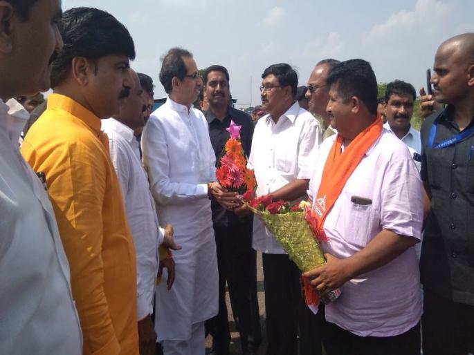 dधुळे : विधानसभा निवडणुकीच्या अनुषंगाने शिवसेना पक्षप्रमुख उध्दव ठाकरे यांचे धुळ्यातील गोंदूर विमान तळावर दुपारी १२ वाजून २२ मिनीटांनी आगमन झाले़ यावेळी माजी मंत्री डॉ़ सुभाष भामरे, पालकमंत्री दादा भूसे, खासदार संजय राऊत, शिवसेनेचे उमेदवार हिलाल माळी, हेमंत साळुंखे, भाजपचे मनोहर भदाणे, अतुल सोनवणे, संजय गुजराथी, अॅड़ पंकज गोरे, रविंद्र काकड, राजेंद्र पाटील, गुलाब माळी यांच्यासह अन्य पदाधिकारी उपस्थित होते़ या पदाधिकाऱ्यांनी उध्दव ठाकरे यांचे पुष्पगुच्छ देवून स्वागत केले़ यानंतर लगेच ठाकरे हे विशेष हेलिकॉप्टरने नंदुरबार जिल्ह्यातील धडगाव येथील सभेकडे रवाना झाले़ त्यांच्यासोबत खासदार संजय राऊत होते़ धडगाव येथील सभा आटोपल्यानंतर ते हेलिकॉप्टरने पुन्हा गोंदूर विमानतळावर येतील आणि धुळे शहरातील महायुतीचे उमेदवार हिलाल माळी यांच्या उमेदवारी प्रचारार्थ आयोजित क्युमाईन क्लब समोरील जागेवर होणाºया सभेकडे दाखल होतील़