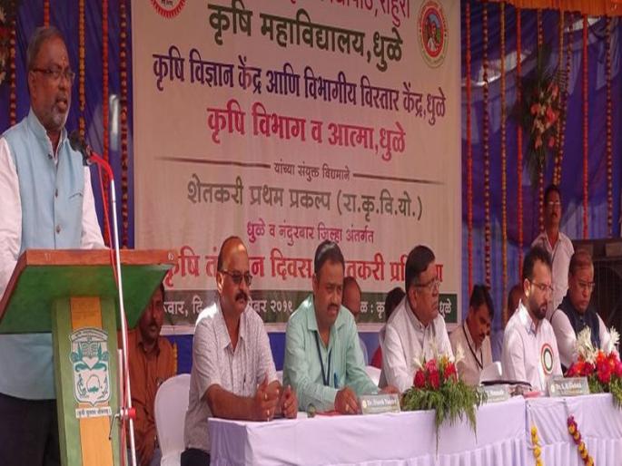आॅनलाइन लोकमतधुळे : आजचे बदलते हवामान पाहता अधिक उत्पादनासाठी शेतकऱ्यांनी सुधारित व आधुनिक तंत्रज्ञानाचा वापर करावा. त्यामुळे अधिकाधिक उत्पन्न व उत्पादन घेणे शक्य होऊ शकेल असे प्रतिपादन महात्मा फुले कृषी विद्यापीठाचे संचालक, संशोधन तथा विस्तार शिक्षण संचालक डॉ.शरद गडाख यांनी आज येथे केले.कृषी महाविद्यालय धुळे, कृषी विज्ञान केंद्र आणि विभागीय विस्तार केंद्र धुळे, कृषी विभाग,आत्मा यांच्या संयुक्त विद्यमाने राष्टÑीय कृषी विकास योजना (शेतकरी प्रथम) व धुळे-नंदुरबार अंतर्गत आयोजित कृषी तंत्रज्ञान दिन, शिवार फेरी व कृषी प्रदर्शनाचे आयोजन करण्यात आले होते. त्यावेळी अध्यक्षपदावरून डॉ. गडाख बोलत होते.व्यासपीठावर कृषी विद्यापीठ कार्यकारी परिषदेचे सदस्य डॉ. पंकज कुमार महाले, शिक्षण संचालक डॉ. अशोक फरांदे, कृषी महाविद्यालय धुळेचे सहयोगी अधिष्ठता डॉ. अशोक मुसमाडे, जिल्हा अधीक्षक कृषी अधिकारी विवेक सोनवणे, विद्यापीठ अभियंता मिलिंद ढोके, कृषी विज्ञान केंद्राचे कार्यक्रम समन्वयक डॉ. दिनेश नांद्रे, डॉ. मुरलीधर महाजन, डॉ. चिंतामणी देवकर उपस्थित होते.या कार्यक्रमाच्यावेळी प्रगतीशील शेतकरी श्रीराम पाटील, प्रकाश पाटील, हिंमतराव माळी, वसंतराव पाटील या शेतकऱ्यांचा सत्कार करण्यात आला.डॉ. गडाख पुढे म्हणाले की, बदलत्या हवामानात जास्त उत्पादन येण्यासाठी महात्मा फुले कृषी विद्यापीठाद्वारे विकसीत सुधारित तंत्रज्ञानाचा वापर करणे गरजेचे आहे. कृषी विद्यापीठाने १२० पिकांवर संशोधन करून २६३ वाण, ३६ यंत्र व अवजारे विकसीत केल्याचे त्यांनी सांगितले.धुळे जिल्ह्यात यावर्षी मोठ्या प्रमाणात पाऊस झालेला आहे. अतिवृष्टी व नुकसानीबाबत माहिती देवून माती व पाणी यांचे होणारे प्रदूषण आणि मातीची होणारी झीज टाळण्यासाठी शेतकºयांनी उपाययोजना कराव्यात असे डॉ. अशोक फरांदे यांनी सांगितले. तर कृषी विद्यापीठाद्वारे माहिती तंत्रज्ञानाचा वापर करून विविध मोबाईल अॅप तयार केल्याची माहितीही शेतकºयांना दिली.कृषी विद्यापीठाने विकसीत केलेले तंत्रज्ञान शेतकºयांपर्यंत पोहचविणे हाच या कार्यक्रमाचा उद्देश असल्याचे डॉ. अशोक मुसमाडे यांनी यावेळी सांगितले.यावेळी तांत्रिक चर्चासत्र झाले. गहू उत्पादन तंत्रज्ञानाबाबत डॉ. सुरेश दोडके, रब्बी कांदा उत्पादन तंत्रज्ञानाबाबत डॉ. श्रीधर देसले, मका पिकातील अमेरिकन लष्करी अळीचे एकात्मिक व्यवस्थापन याविषयी डॉ. पंकज पाटील, कापूस पीक व्यवस्थापन यावर डॉ. मुरलीधर महाजन तर डाळींब पीक व्यवस्थापनावर डॉ. दिनेश नांद्रे यांनी शेतकºयांना मार्गदर्शन केले.