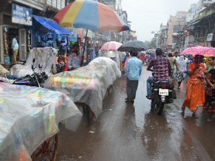 धुळे : एैन दिवाळीच्या काळात चार ते पाच दिवसांपासून सुरू असलेला पावसामुळे नागरिकांना घराबाहेर पडतांना विचार करावा लागत आहे़ शनिवारी दिवाळीच्या पूर्वसंध्येला आग्रारोडवर नागरिकांना खरेदीसाठी गर्दी केली होती़ मात्र अचानक जोरदार पावसाने त्यांची चांगलीच तारांबळ उडाली होती.दिवाळीनिमित्त आग्रारोडवरील पाचकंदिल ते महात्मा गांधी पुतळा, तसेच नवीन महापालिका ते संतोषी माता मंदिर चौकापर्यंत विविध वस्तू विक्रीचे दुकाने सजली आहेत़ धन त्रयोदशीच्या दिवसापासून बाजारपेठेत खरीददारांची प्रचंड गर्दी होऊ लागली आहे़ मुख्य रस्त्यावर चालायलाही जागा मिळणे शक्य होत नाही़. पहिल्यांच दिवशी कपडे, सोने-चांदी, वाहन आदींची खरेदी झाल्याने, कोट्यावधींची उलाढाल झाली आहे.खरेदीसाठी धावपडरविवारी लक्ष्मी पुजन असल्याने शनिवारी बाजारा मोठी गर्दी झाली होती़ केरसुणीला फारसे स्थान राहिलेले नसले तरी दिवाळीनिमित्त लक्ष्मींची मूर्तीसोबत केरसुनीची पुजा केली जाते़ लक्ष्मी पुजनाच्या दिवशी लक्ष्मीच्या मूर्तीसोबत केरसुनीची पुजा केली जात असल्याने केरसुनीची विक्री झाली़ व्यापारी वर्ग दिवाळीच्या सणात व्यवहारातील जमा खर्च नोंदणीसाठी खतावण्यांचा वापर करीत असतात; यामुळे दिवाळी पाडव्या निमित्त खतावण्यांची पूजा व्यापारी वगार्तून करण्यात येते. या खतावण्या विकल्या जात आहेत़अचानक उडाली धावपडआठवड्याभरापासून रिमझिम तर कधी जोरदार पाऊस सुरू आहे़ त्यामुळे विक्रेत्यांची धावपळ तर व्यापाऱ्यांच्या व्यवसायावर परिणाम होत आहे़