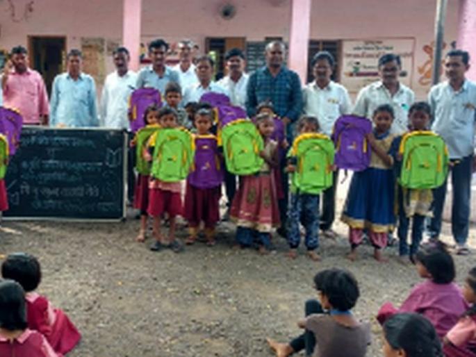 तहाडी जि.प. शाळेत दप्तर व साहित्य वाटप