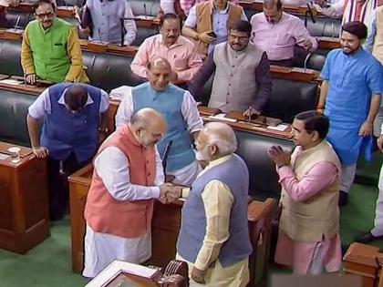 केंद्रीय गृहमंत्री अमित शहा यांनी मांडलेले घटनेतील ३७० व ३५-अ ही कलमे रद्द करणारे दुरुस्ती विधेयक संसदेने संमत केले आणि जम्मू व काश्मीर या राज्याचा विशेष स्वायत्त दर्जा संपुष्टात आला. या विधेयकाने त्या राज्याचे जम्मू-काश्मीर व लेह लडाख या दोन भागांत विभाजन करून, त्याला असलेला राज्याचा दर्जा काढला व त्या भागांचे केंद्रशासित प्रदेशात रूपांतरही केले. या विधेयकाला भाजपसह अकाली दल, शिवसेना, तेलंगण राष्ट्र समिती, बसपा आणि अण्णा द्रमुक या पक्षांनी पाठिंबा दिला, तर काँग्रेस, समाजवादी, तृणमूल काँग्रेस, जेडीएस, द्रमुक व राष्ट्रवादी काँग्रेस यांनी त्याला विरोध केला. हे विधेयक संमत झाल्याचा आनंद साऱ्या देशात भाजप, संघ व हिंदुत्ववादी संघटनांनी साजरा केला, तर ते लष्कर व बहुमत यांच्या बळावर मंजूर करून घेतल्याची टीका विरोधकांनी केली.