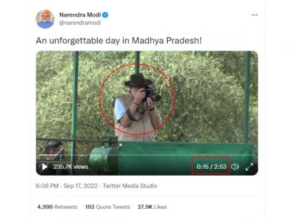 व्हिडिओ २.५३ सेकंदाचा असून व्हिडिओ १५ व्या सेकंदावर थांबवल्यानंतर मोदी त्यांच्या कॅमेरातून चित्त्यांचा फोटो टिपताना दिसतात. या फ्रेममध्ये मोदींच्या कॅमेराच्या लेन्सवर कोणतंही कव्हर नव्हतं हे स्पष्ट होतं.