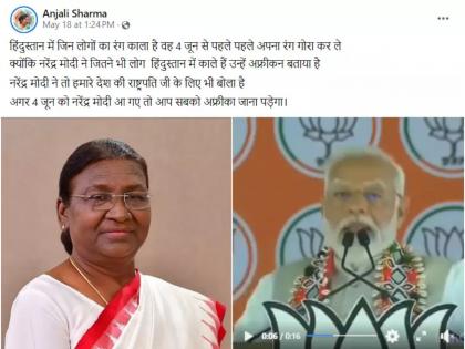 16 सेकंदाच्या या व्हायरल व्हिडीओमध्ये पंतप्रधान "ज्यांच्या त्वचेचा रंग काळा आहे ते आफ्रिकेतील आहेत. द्रौपदी मुर्मू देखील आफ्रिकन आहेत आणि त्यामुळे त्यांच्या त्वचेचा रंग काळा असेल तर त्यांना पराभूत केलं पाहिजे" असं म्हणताना दिसत आहेत.