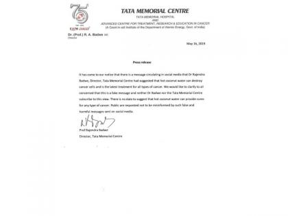 आमच्या असे निदर्शनास आले आहे की, सोशल मीडियात टाटा मेमोरियल हॉस्पीटलचे संचालक डॉ. राजेंद्र बडवे यांच्या नावे गरम नारळपाणी प्यायल्याने कर्करोगाच्या पेशी मरतात आणि ही या रोगावरची नवी उपचारपद्धत शोधली गेली आहे असा मेसेज व्हायरल होत आहे. यावर आम्ही स्पष्ट करू इच्छितो की, अशा पद्धतीचा कोणताही सल्ला डॉ. राजेंद्र बडवे अथवा टाटा मेमोरियल हॉस्पीटलने दिलेला नाही. संबंधित मेसेज पूर्णपणे खोटा असून नारळाच्या पाण्यामुळे कर्करोगावर उपचार होतात अशा पद्धतीचे कोणतेही वैज्ञानिक संशोधन अस्तित्वात नाही. त्यामुळे लोकांनी अशा मेसेजपासून सतर्क राहावं आणि खोटा संदेश लोकांमध्ये पसरणार नाही याची काळजी घ्यावी.