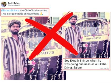 महाराष्ट्र राज्याचे मुख्यमंत्री एकनाथ शिंदे हे शिवसेनेत सक्रिय होण्याआधी काही काळ ठाण्यात रिक्षा चालवत असत. 'रिक्षावाला ते मुख्यमंत्री', या त्यांच्या जिगरबाज प्रवासाची चर्चा मीडियात आणि सोशल मीडियातही झाली. 'रिक्षावाल्याची रिक्षा काल सुसाट सुटली होती', असं म्हणत माजी मुख्यमंत्री उद्धव ठाकरे यांनी शिंदेंच्या विधानसभेतील भाषणाची खिल्ली उडवली होती. त्यानंतर, अनेक ठिकाणी रिक्षावाल्यांनी एकनाथ शिंदेंना पाठिंबा दिला होता आणि मग हळूहळू हा विषय आपोआप निवळला होता. मात्र, काल-परवापासून एकनाथ शिंदेंचं रिक्षा कनेक्शन पुन्हा चर्चेत आलंय. कारण, एक दाढीवाला तरुण आपल्या रिक्षासोबत उभा असल्याचा फोटो सोशल मीडियावर व्हायरल होतोय आणि हा तरुण दुसरा-तिसरा कुणी नसून मुख्यमंत्री एकनाथ शिंदे असल्याचा दावा केला जातोय. मात्र, 'लोकमत'ने केलेल्या पडताळणीत सत्य वेगळंच असल्याचं समोर आलं आहे. फोटोतील ती व्यक्ती कोण आणि सध्या काय करते, याचीही माहिती आम्ही मिळवली आहे.