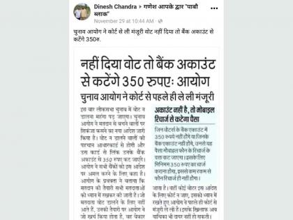 त्याचवेळी, दुसऱ्या फेसबुक वापरकर्त्याने कात्रणाच्या बातमीचा हवाला देत लिहिले आहे की, "निवडणूक आयोगाने कोर्टाची मंजुरी घेतली आहे आणि मतदान केले नाही तर बँक खात्यातून 350 रुपये कापले जातील."