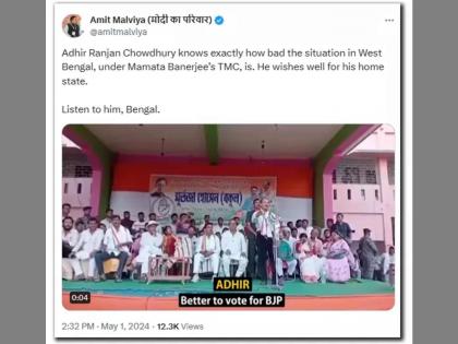 भाजपा आयटी सेलचे प्रमुख अमित मालवीय यांनी हा व्हिडीओ पोस्ट केला आहे. त्यांनी कॅप्शनमध्ये म्हटले आहे की, अधीर रंजन चौधरी यांना कल्पना आहे की ममता बॅनर्जी यांच्या नेतृत्वाखालील टीएमसी सरकारमुळे पश्चिम बंगालमधील परिस्थिती किती वाईट आहे. त्यांना त्यांचे जन्मगाव आणि राज्य चांगले राहावे असे वाटते. बंगालवासीयांनो, ते काय म्हणताहेत ते ऐका.