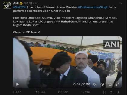 एक्सवर मनमोहन सिंग यांच्या शेवटच्या प्रवासाचा व्हिडिओ शेअर करताना एका यूजरने म्हटलं की, "सुरक्षा कर्मचाऱ्यांच्या व्यतिरिक्त, मनमोहन सिंग यांच्या शेवटच्या प्रवासात कोणीही दिसणार नाही. काँग्रेसचा एकही माणूस आला नाही, काँग्रेसला फक्त बनावट गांधींमध्येच रस आहे."