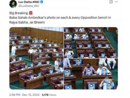 १९ डिसेंबर रोजी सोशल मीडिया प्लॅटफॉर्मवर 'लव दत्ता INC' नावाचा वापरकर्त्याने एक फोटो शेअर केला आहे. यासह लिहिले की, "राज्यसभेत विरोधी पक्षाच्या बाकावर डॉ. बाबासाहेब आंबेडकर यांचा फोटो, जय भीम"
