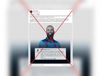 '@Moeen_Ali18' या ट्विटर हँडलवरून हे ट्विट व्हायरल झाले. त्यात लिहिले गेले की,''नुपूर शर्माच्या विधानाप्रकरणी भारताने माफी न मागितल्यास. मी भारतात क्रिकेट खेळायला येणार नाही, तसंच मी आयपीएल स्पर्धेवर बहिष्कार टाकेन. मी माझ्या मुस्लिम बांधवांनाही असंच करण्याचं आवाहन करत आहे.''