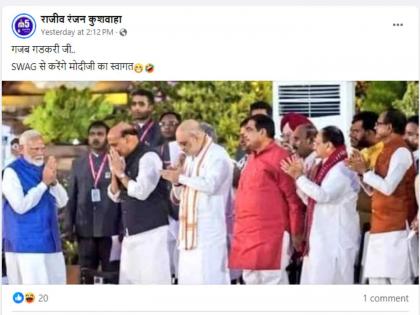 सोशल मीडिया यूजर 'राजीव रंजन कुशवाह' यांनी व्हायरल शेअर करताना (अर्काइव्ह लिंक) लिहिले की, "अप्रतिम गडकरी जी... मोदीजींचे स्वॅगसह स्वागत." अन्य अनेक युजर्सनी यासारखा फोटो आणि समान दावा करत सोशल मीडियावर पोस्ट केल्या आहेत.