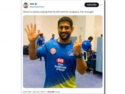 'बूम'ने केलेल्या सत्य पडताळणीतून समोर आले आहे की धोनीचा हा फोटो 2020 साली पोस्ट करण्यात आला होता. जेव्हा चेन्नई सुपर किंग्सने ट्विटरवर ६ मिलियन फॉलोअर्स पूर्ण झाल्याचे सेलिब्रेशन केले होते, त्यावेळचा हा फोटो आहे. पण वादग्रस्त ट्वीट्ससाठी प्रसिद्ध असलेल्या कमाल आर खान याने धोनीचा हा फोटो पोस्ट करत त्याला कॅप्शन दिले आहे की, 'धोनी स्पष्टपणे तुम्हाला सांगत आहे की त्याने काँग्रेसला मत दिले आहे, विषय संपला!'
