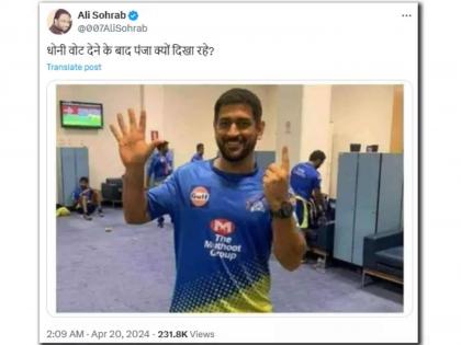 ट्विटरच्या दुसऱ्या एका व्हेरिफाइड युजरने हिंदीत कॅप्शन लिहिले आहे की, धोनी मतदान केल्यानंतर हाताचा पंजा का दाखवत आहे? (धोनी वोट देने के बाद पंजा क्यों दिखा रहे?)