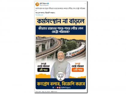 Fact Check : पश्चिम बंगाल आणि त्रिपुरा भारतीय जनता पक्षाच्या (भाजप) एक्स हँडलवरुन नुकतेच एलीव्हेटेड लाईनवरील मेट्रोचा एक फोटो शेअर करण्यात आला होता. या फोटोसोबत दावा करण्यात आला होता की, भारतात भाजपच्या नेतृत्वाखालील सरकारने साध्य केलेल्या मेट्रो रेल्वे सेवांच्या विकासाचे प्रतिबिंब दर्शवत आहे.