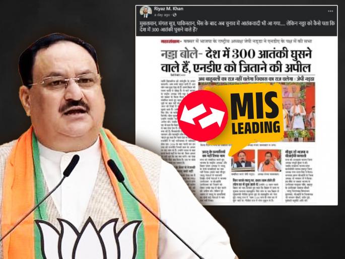 पीटीआय फॅक्ट चेक डेस्कने यासंदर्भात तपास केला आणि व्हायरल दावा दिशाभूल करणारा असल्याचे आढळून आले. सत्य पडताळणीत आढळले की व्हायरल स्क्रीनशॉट दैनिक भास्करमध्ये प्रकाशित झालेल्या चार वर्ष जुन्या बातमीचा आहे. ऑक्टोबर 2020 मध्ये बक्सरमधील निवडणूक प्रचारादरम्यान जेपी नड्डा यांनी गुप्तचर संस्थांच्या अहवालाचा हवाला देत 300 दहशतवादी देशात घुसणार असल्याचे भाष्य केले होते. भाषणादरम्यान त्यांनी सीमा सुरक्षेसाठी एनडीए आघाडीला विजयी करण्याचे आवाहन केले होते. त्यामुळेच सध्याच्या निवडणुकीशी संबंध लावून सोशल मीडियावर करण्यात येत असलेला दावा दिशाभूल करणारा आहे.