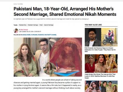 व्हायरल दाव्याचे सत्य शोधण्यासाठी आम्ही गुगल लेन्सचा वापर केला. आम्हाला अनेक न्यूज वेबसाईटवर फोटोशी संबंधित बातम्या मिळाल्या. bollywoodshaadis.com या वेबसाईटवर फोटोशी संबंधित बातमी सापडली. ३० डिसेंबर २०२४ रोजी प्रकाशित झालेल्या बातमीत म्हटलं आहे की, पाकिस्तानच्या अब्दुल अहदने त्याच्या आईचं दुसरं लग्न लावून सर्वांना आश्चर्यचकित केलं. पाकिस्तानची ही गोष्ट अनेकांच्या हृदयाला भिडली आहे. अब्दुल अहदने इन्स्टाग्रामवर एक व्हिडीओ शेअर केला आहे, ज्यामध्ये त्याने त्याच्या आईच्या दुसऱ्या लग्नाची क्लिपही शेअर केली आहे.