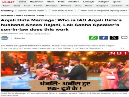 या दाव्याची पडताळणी करण्यासाठी, आम्ही एक गुगल कीवर्ड सर्च केला. त्यानंतर आम्हाला १३ नोव्हेंबर २०२४ च्या बातम्या (येथे आणि येथे) सापडल्या. वृत्तानुसार, लोकसभा अध्यक्ष ओम बिर्ला यांची मुलगी अंजली बिर्ला यांनी १२ नोव्हेंबर २०२४ रोजी बिझनेसमन अनिश रजनीसोबत लग्न केले. अनिश एका सिंधी व्यापारी कुटुंबातील असून सध्या ते आपल्या कुटुंबाचा व्यवसाय पुढे नेण्यात व्यस्त आहेत.