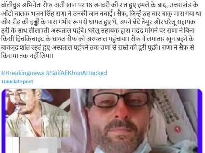पोस्टच्या कॅप्शनमध्ये लिहिले आहे, “अभिनेता सैफ अली खानचा हॉस्पिटलमधून पहिला फोटो. माझा जीव वाचवणाऱ्या ड्रायव्हरशी व्हिडीओ कॉलवर बोललो. १६ जानेवारीच्या रात्री बॉलिवूड अभिनेता सैफ अली खानवर हल्ला झाल्यानंतर, उत्तराखंडमधील ऑटो चालक भजन सिंह राणा यांनी त्यांचे प्राण वाचवले. सहा वेळा चाकूने वार करण्यात आले आणि पाठीच्या मणक्याजवळ गंभीर जखमी झालेल्या सैफला त्याचा मुलगा आणि घरातील नोकर हरीसह लीलावती रुग्णालयात दाखल करण्यात आले. घरकाम करणाऱ्या नोकराने मदत मागितली तेव्हा राणाने जखमी सैफला रुग्णालयात नेले. सतत रक्तस्त्राव होत असतानाही सैफ शांत राहिला आणि त्याने राणाला रुग्णालयात पोहोचण्यासाठी किती अंतर आहे ते विचारले. राणाने सैफकडून भाडेही घेतले नाही”., असा या पोस्टमध्ये लिहिले आहे.